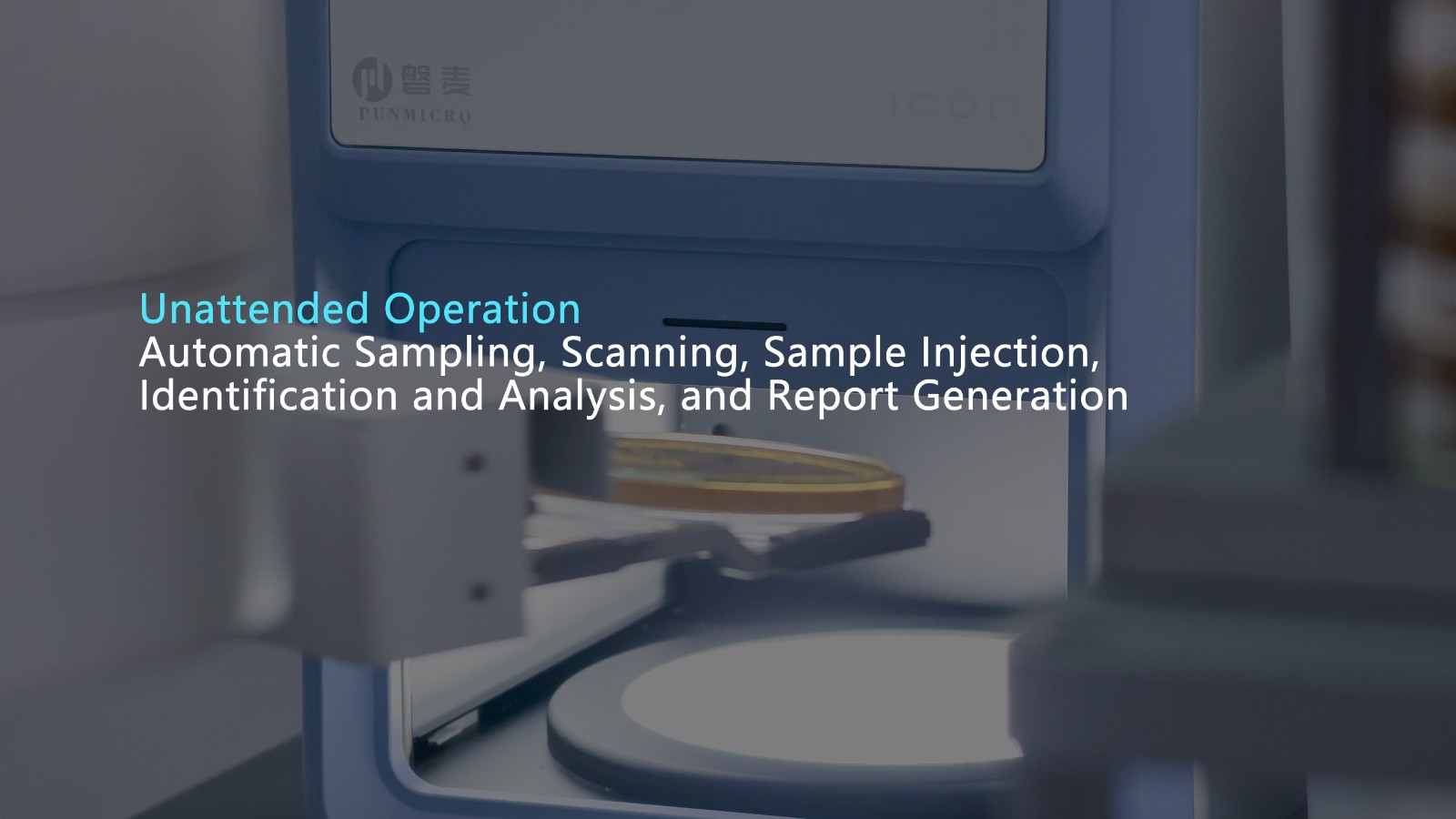 Automatic sampling, colony identification and analysis, generating electronic reports, with 24-hour unmanned operation throughout the process