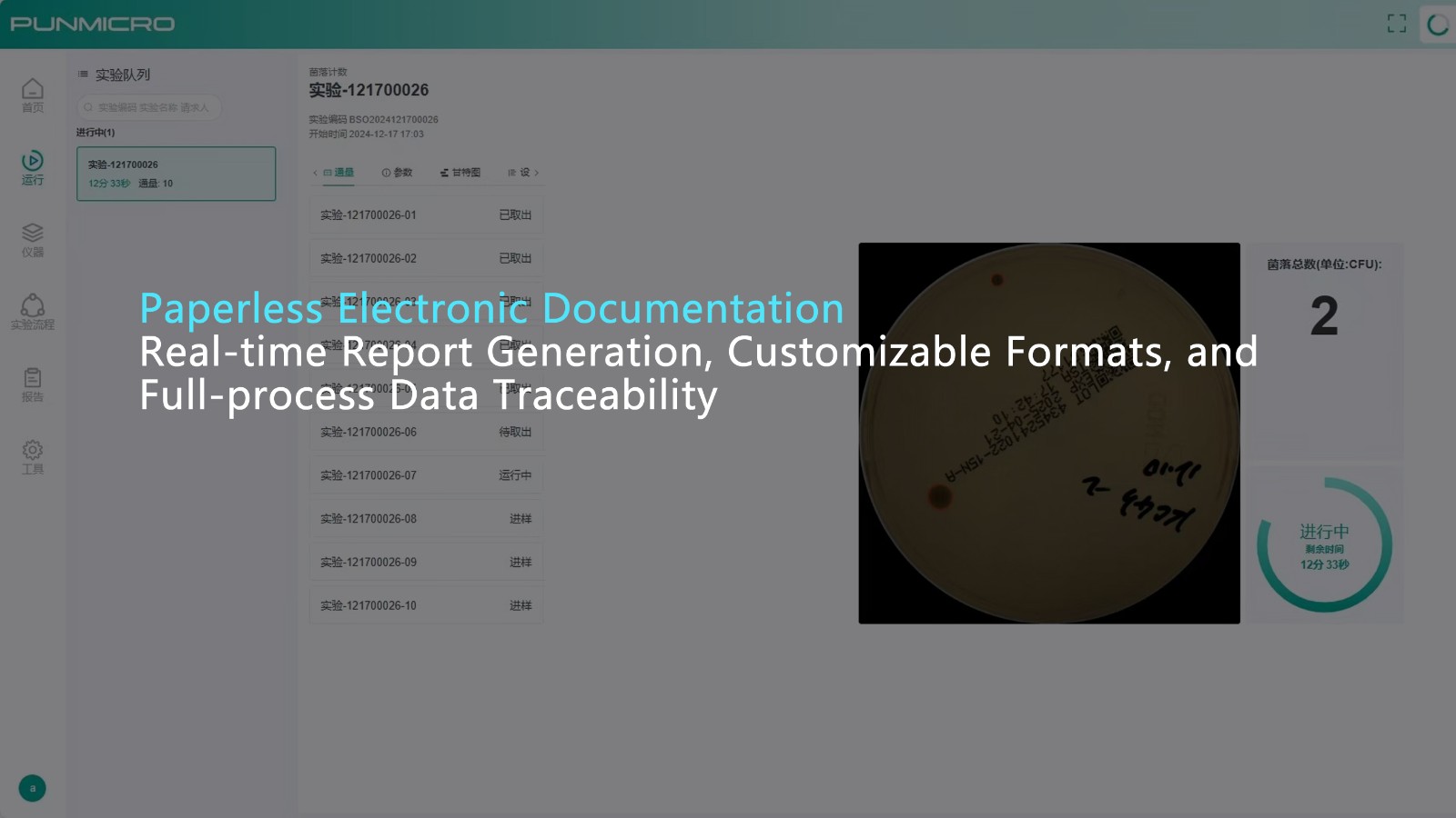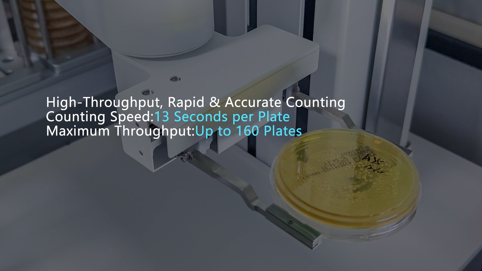 The maximum throughput for a single run can reach 160 culture dishes, with a counting rate of 13 seconds per dish